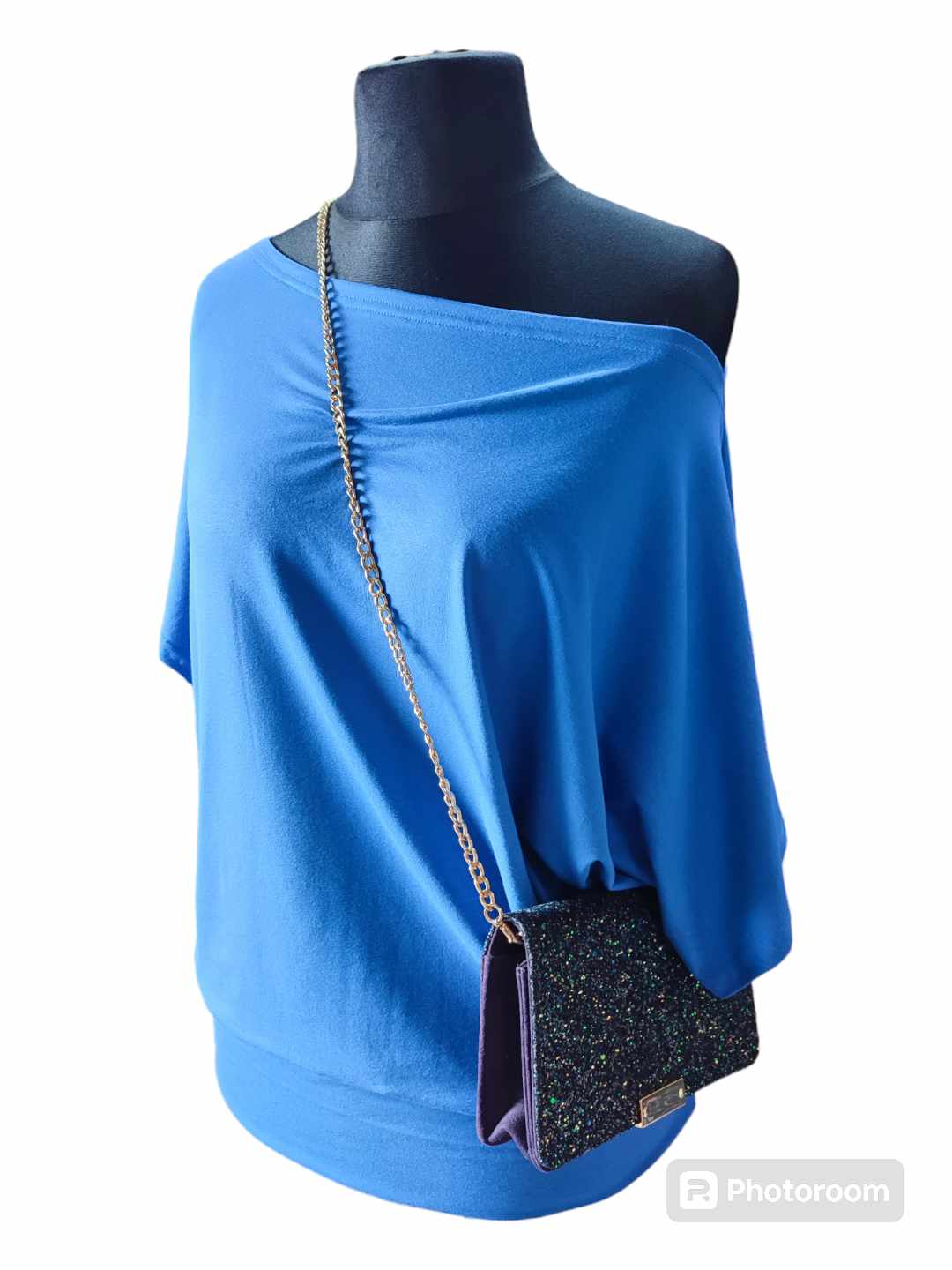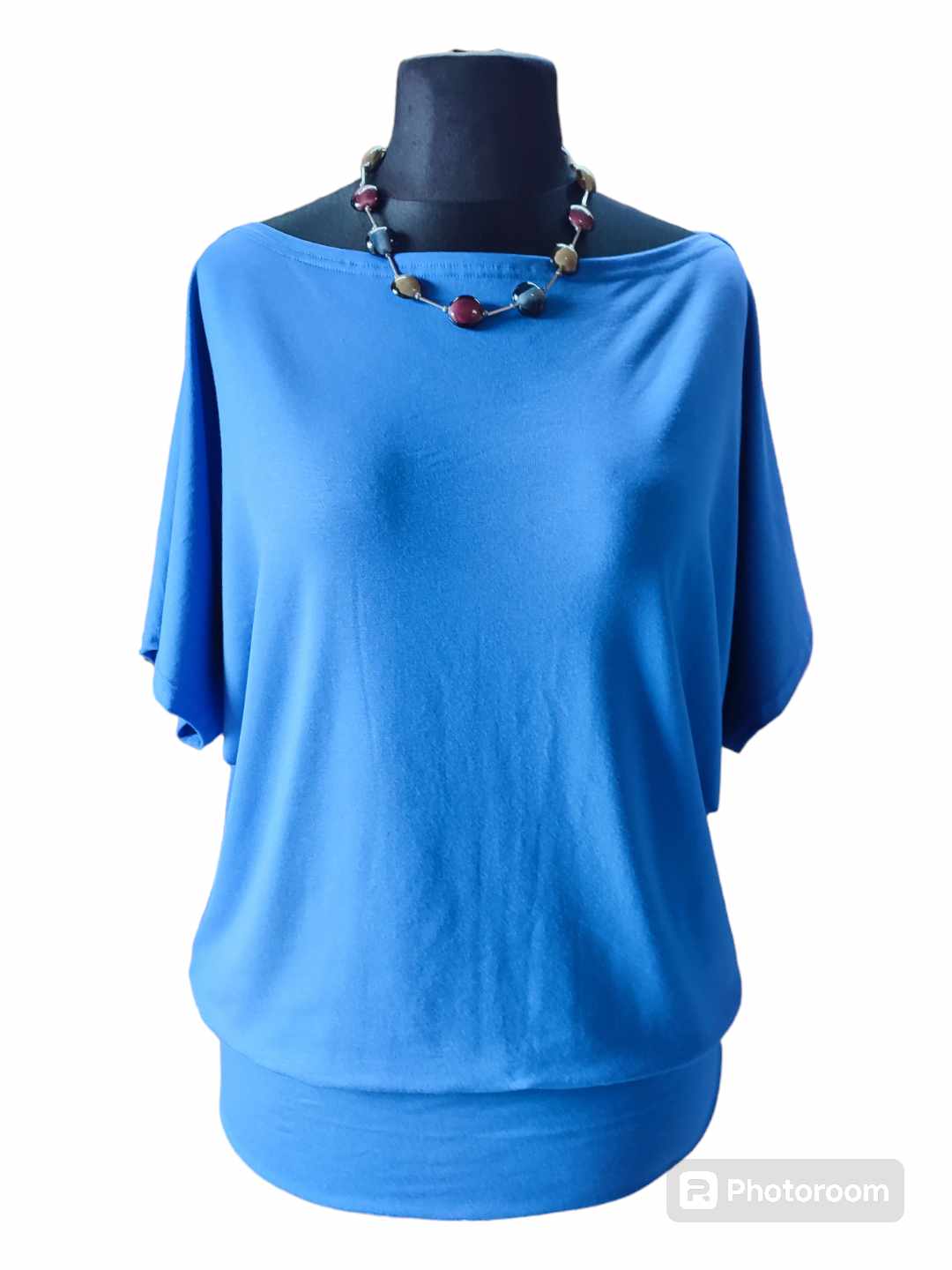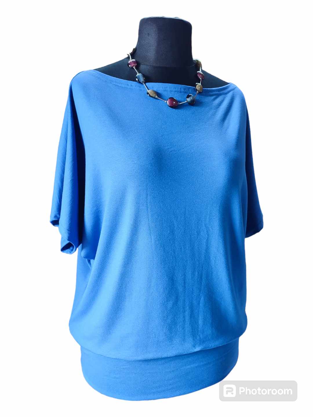 Bluzeczka ma prosty klasyczny fason, krótki rękawek typu kimono oraz dekolt w łódeczkę. Na dole doszyty jest szeroki podwójny pas tego samego materiału który wyszczupli biodra imitując ściągacz. Materiał jest elastyczny więc możesz rozciągnąć dekolt zalotnie pokazując ramię, uzyskasz wtedy ciekawe wrażenie asymetrii. Piękny kolor chabrowy jest odpowiedni dla każdego typu kobiecej urody, będzie idealny zarówno dla blondynki jak czarnowłosej czy rudej. Jednolity kolor pozwoli Ci na piękne połączenia z wszelkiego rodzaju spodniami, czy będą to czarne dżinsy, skiny czy szerokie lniane spodnie. Bluzeczka świetnie zaprezentuje się także do krótkich szortów. Model bardzo kobiecy, idealny dla kobiet kochających komfortowe i wygodne ubrania a luźny fason dodatkowo wspaniale zamaskuje wszelkie niedoskonałości figury. Materiał z którego szyję bluzeczki to polska dzianina dobrej jakości, mocno elastyczna, mięciutka, elastyczna, miękko ułoży się na każdej sylwetce. Serdecznie polecam dla pań które chcą ukryć co nieco.