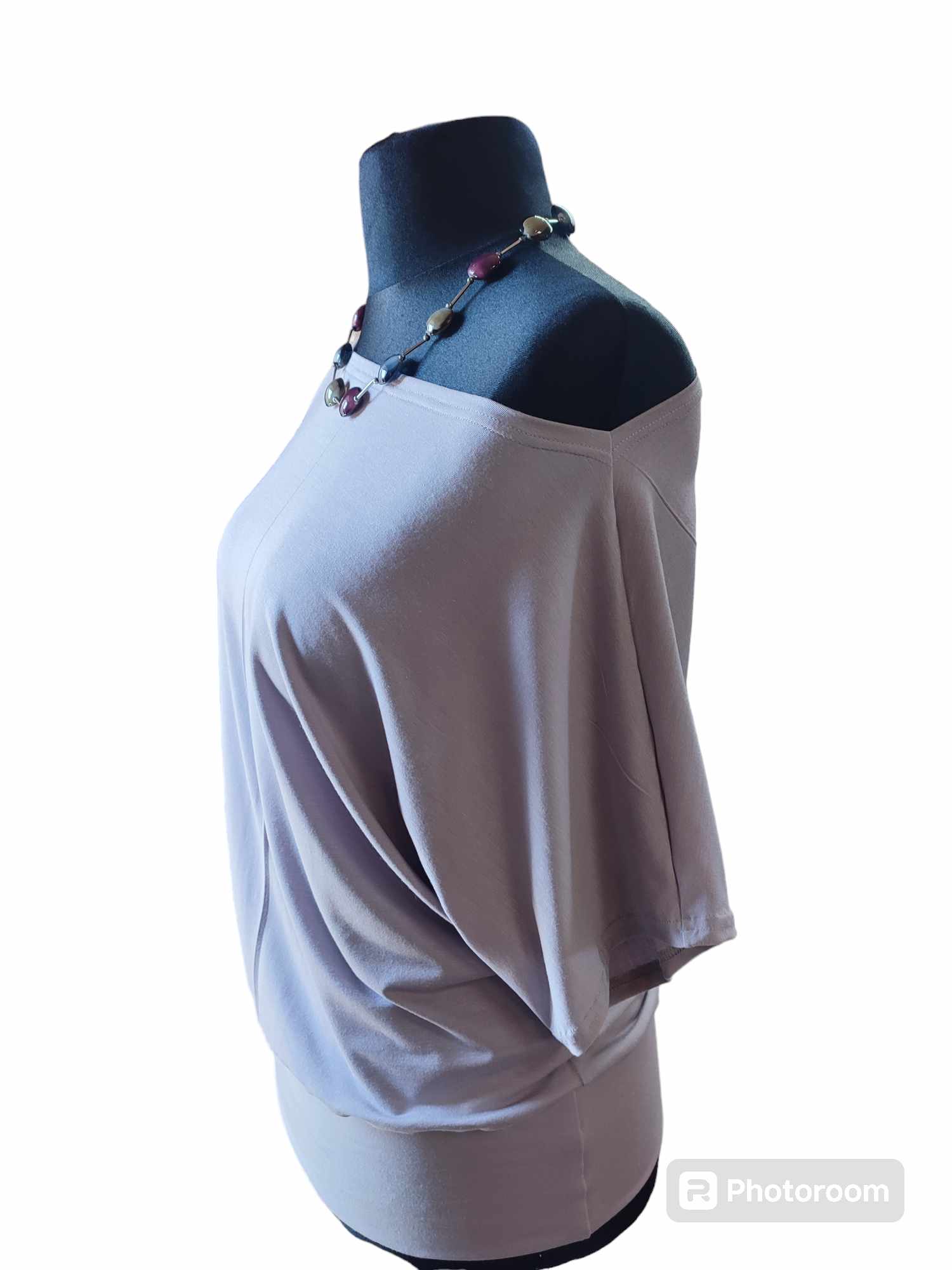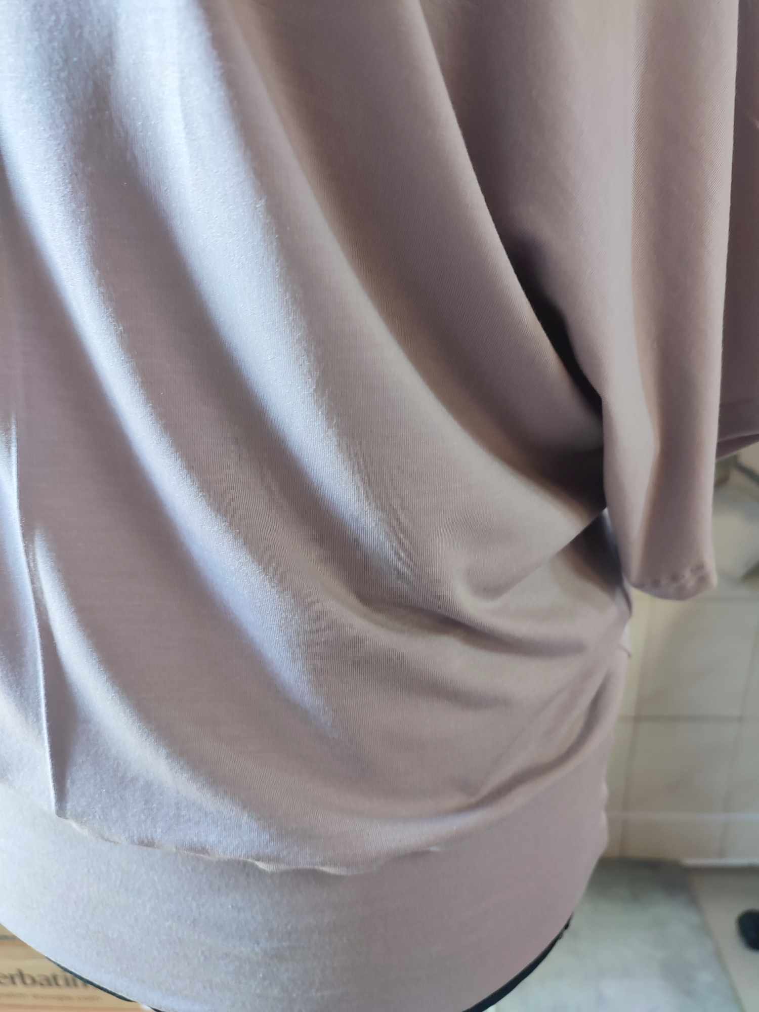 Bluzeczka ma prosty klasyczny fason, krótki rękawek typu kimono oraz dekolt w łódeczkę. Na dole doszyty jest szeroki podwójny pas tego samego materiału który wyszczupli biodra imitując ściągacz. Materiał jest elastyczny więc możesz rozciągnąć dekolt zalotnie pokazując ramię, uzyskasz wtedy ciekawe wrażenie asymetrii. Szary jest neutralnym kolorem, który niezależnie od wieku, płci czy typu urody pasuje praktycznie każdemu. To świetna opcja dla osób, które chcą unikać zbyt jaskrawych lub wyrazistych kolorów. Do pracy. Szary kolor jest odpowiedni w miejscach pracy o dress codzie biznesowym. Jednolity kolor pozwoli Ci na piękne połączenia z wszelkiego rodzaju spodniami, czy będą to czarne dżinsy, skiny czy szerokie lniane spodnie. Bluzeczka świetnie zaprezentuje się także do krótkich szortów. Model bardzo kobiecy, idealny dla kobiet kochających komfortowe i wygodne ubrania a luźny fason dodatkowo wspaniale zamaskuje wszelkie niedoskonałości figury. Materiał z którego szyję bluzeczki to polska dzianina dobrej jakości, mocno elastyczna, mięciutka, elastyczna, miękko ułoży się na każdej sylwetce. Serdecznie polecam dla pań które chcą ukryć co nieco.