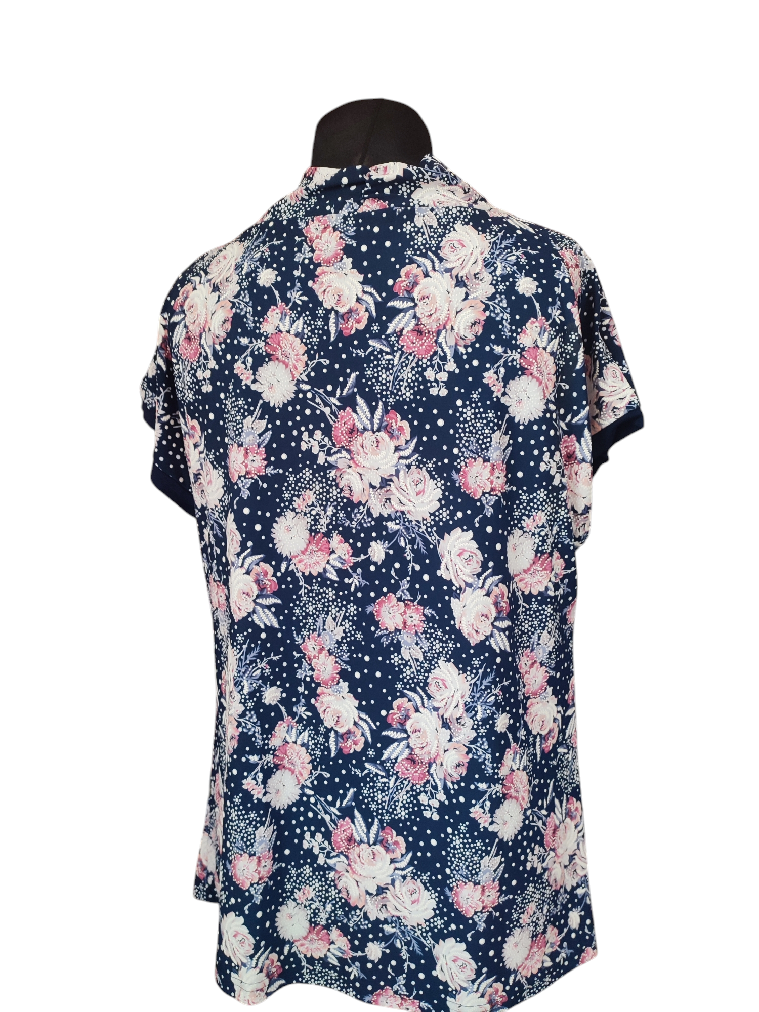 Strona główna » Bluzki Petite » Bluzka z lejącym dekoltem typu woda - różowe kwiatuszki i białe groszki