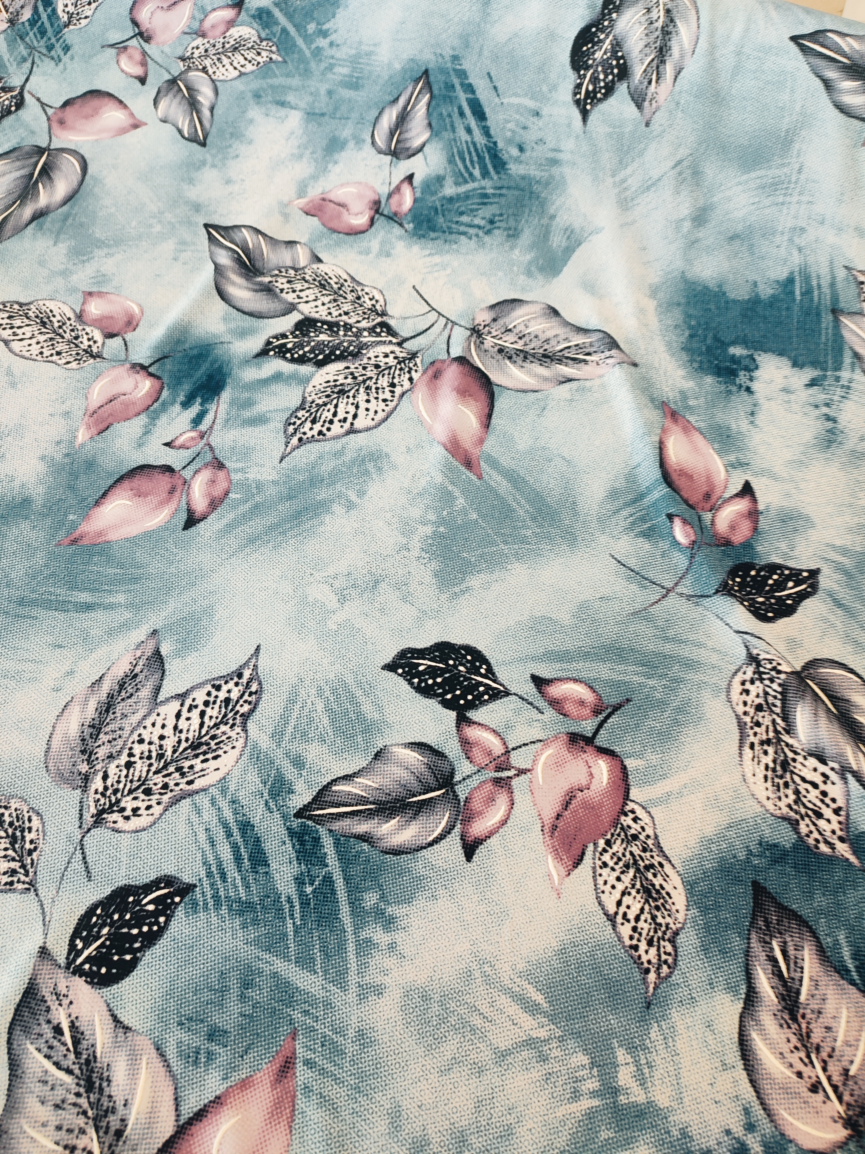 Drukowany wzór w listeczki.