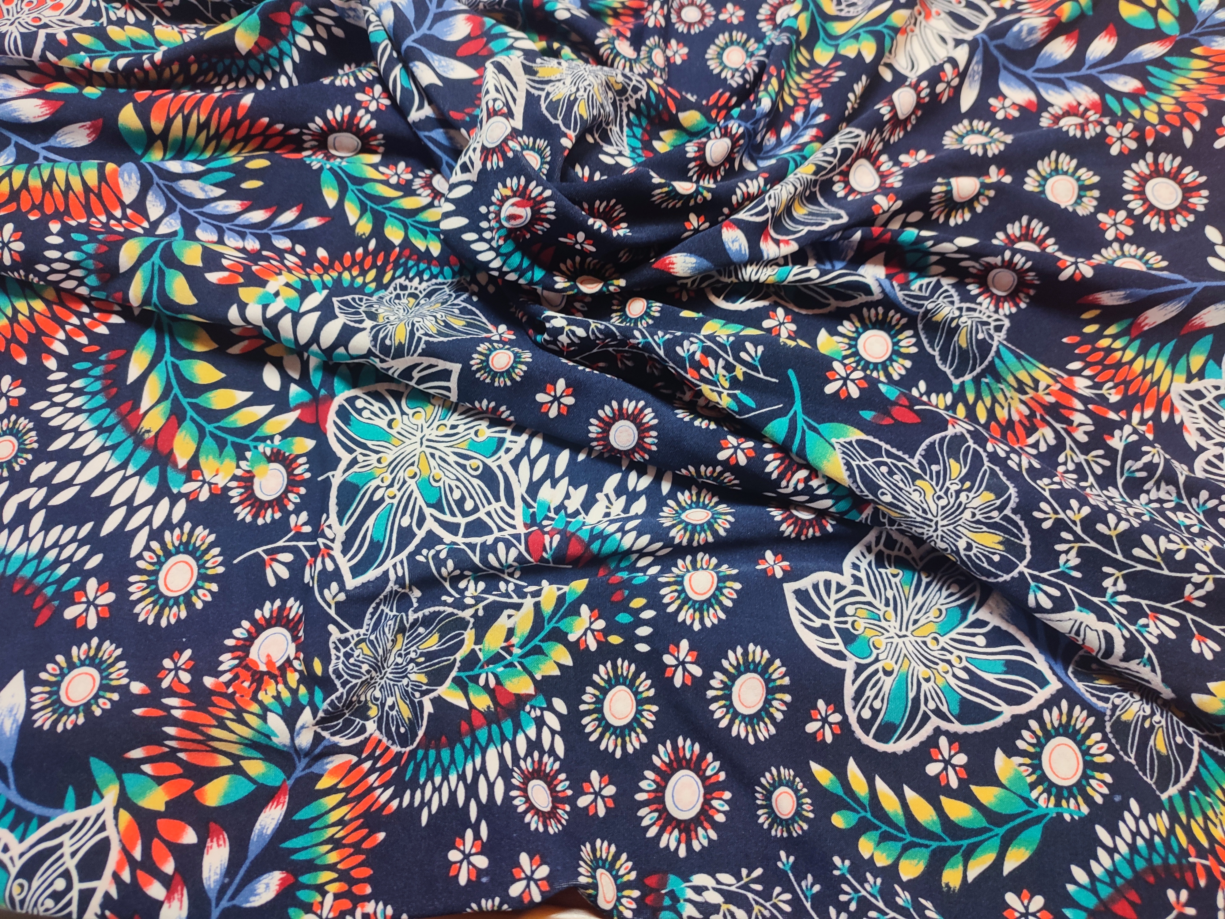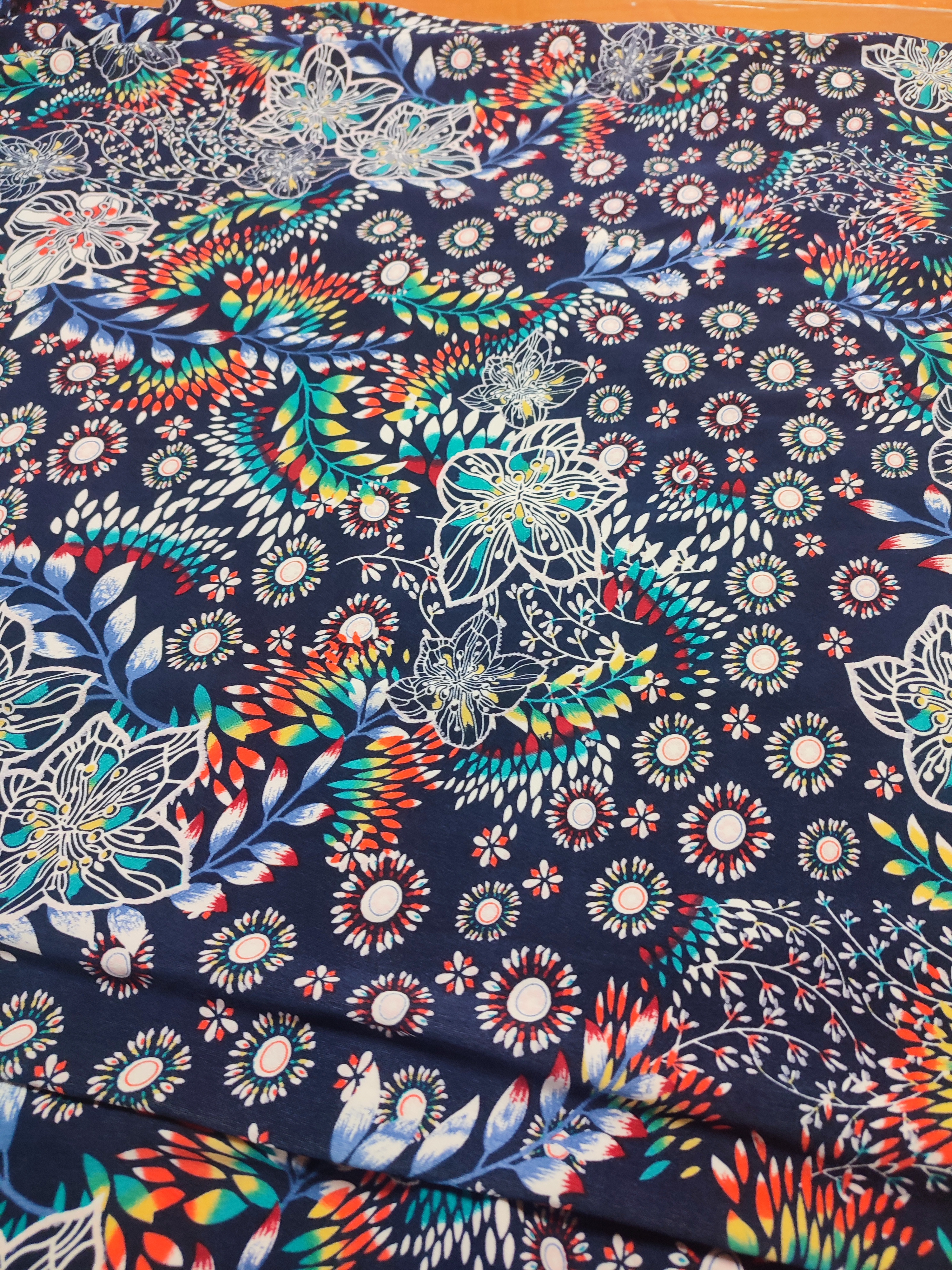 Granatowa elastyczna dzianina z fantazyjnym wzorem