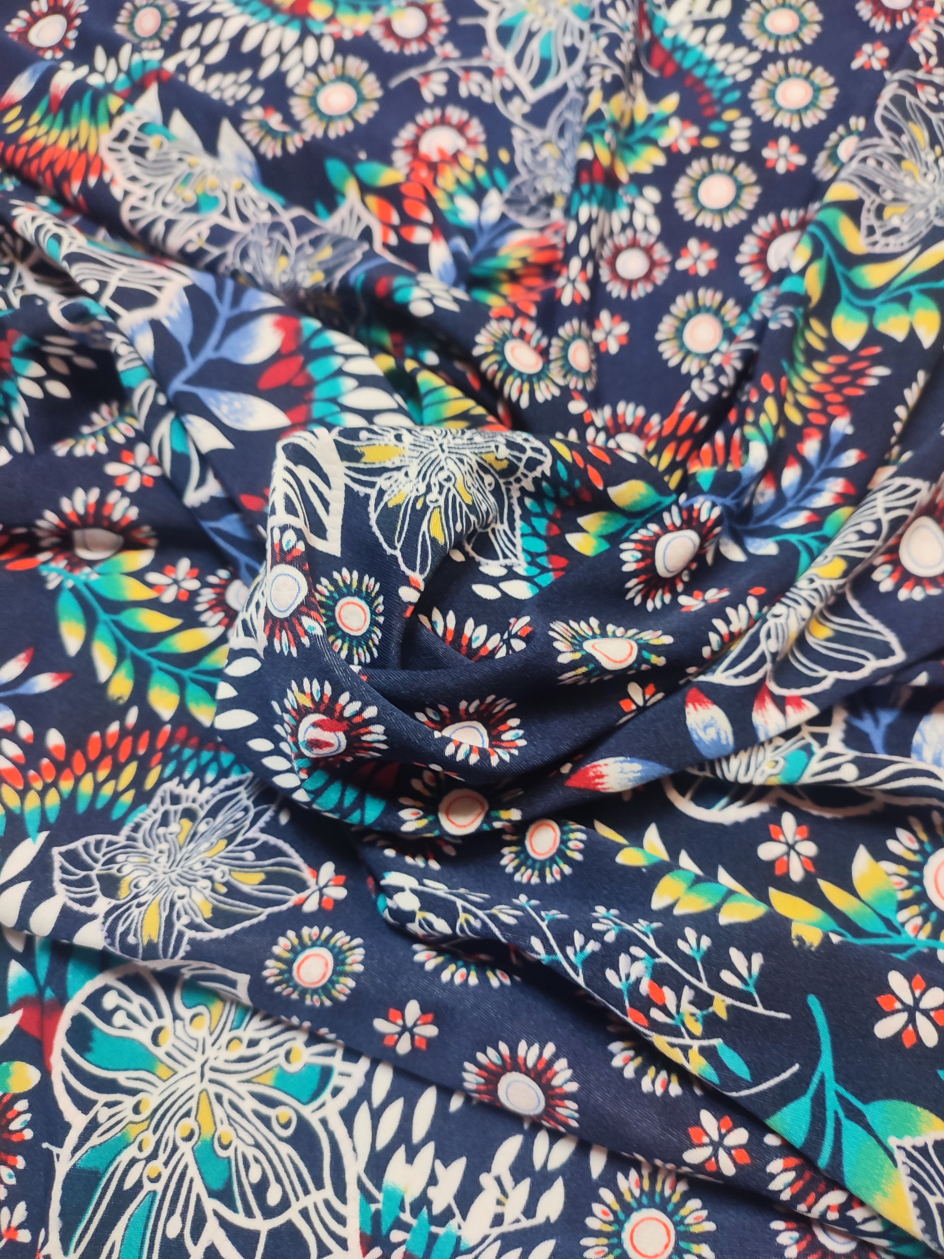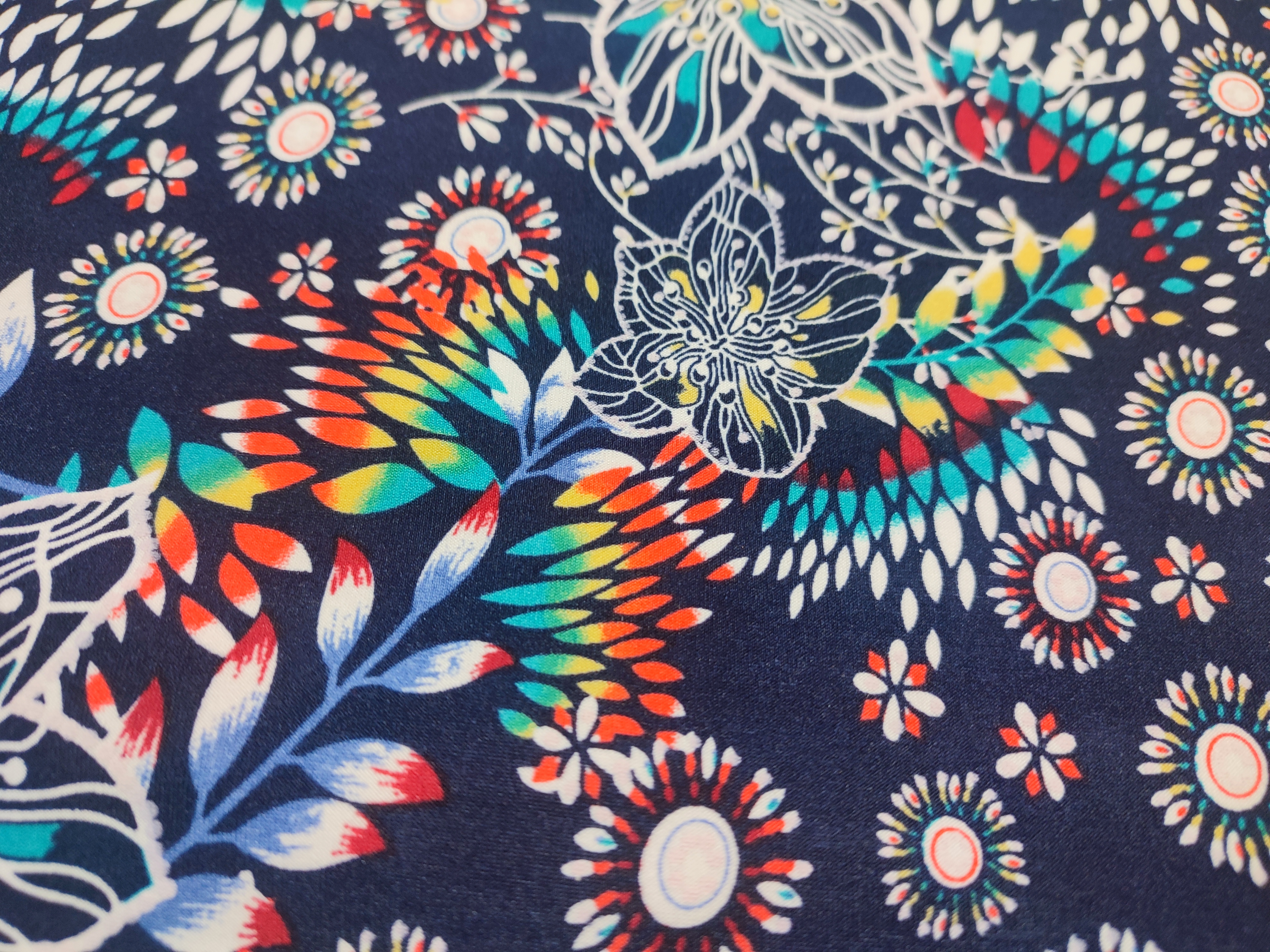 Strona główna » Tkaniny » Granatowa elastyczna dzianina z fantazyjnym wzorem
