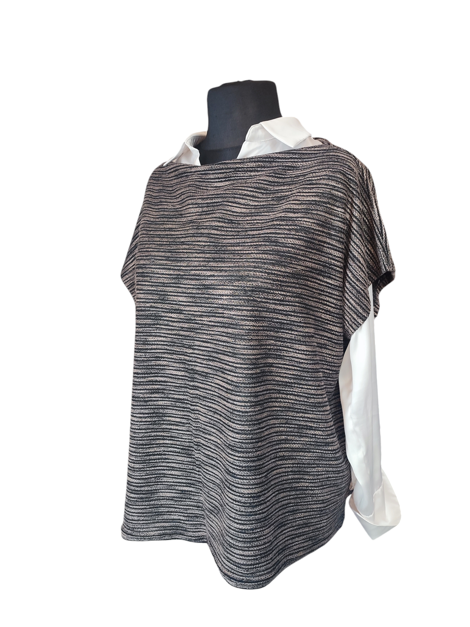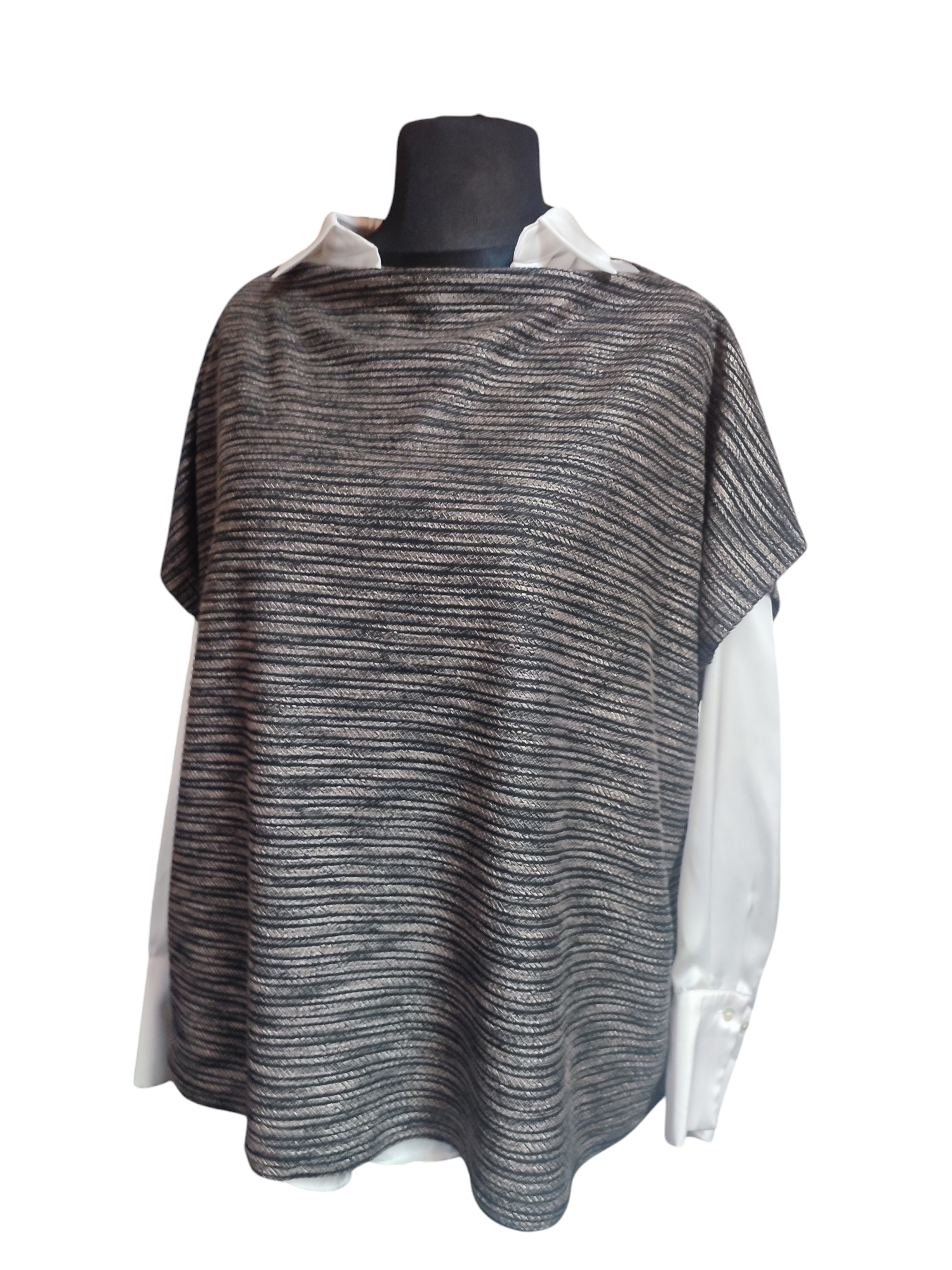 Nasza propozycja na zbliżającą się wiosnę, kamizelka w stylu oversize sprawdzi się do stworzenia wielu ciekawych stylizacji z dłuższą białą koszulą. Luźny dekolt w linii prostej pozostawiony bez wykończenia, naturalnie zawija się do lewej strony. Prosty niebanalny fason jest odpowiedni dla każdej figury. Wykonana z wyjątkowej dzianiny gęsto zdobionej beżowym splotem doda niesamowitego blasku cerze zmęczonej zimą, szarymi dniami i brakiem słońca. Materiał elastyczny, bardzo dobry w utrzymaniu, nie wymaga prasowania.