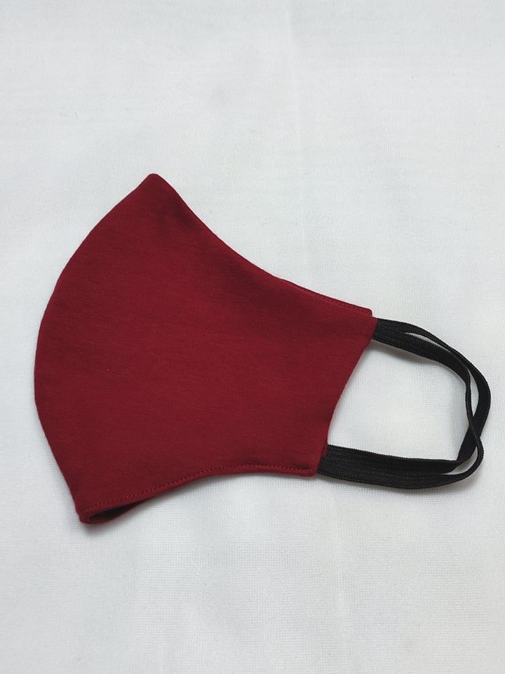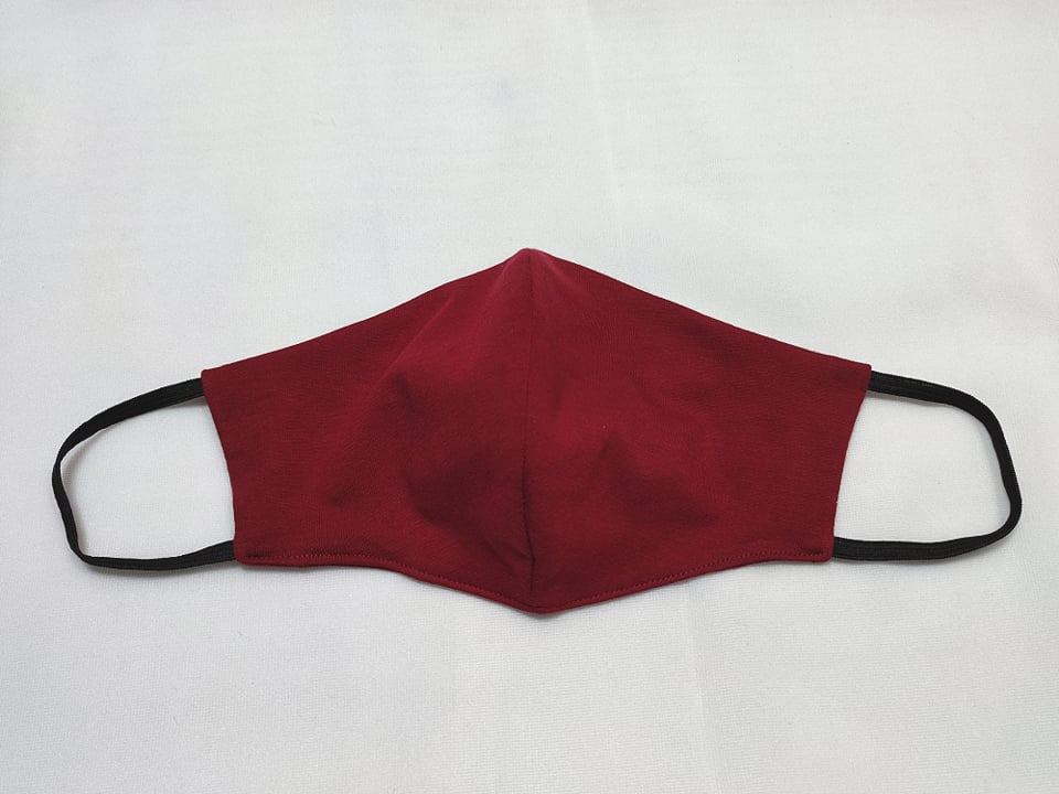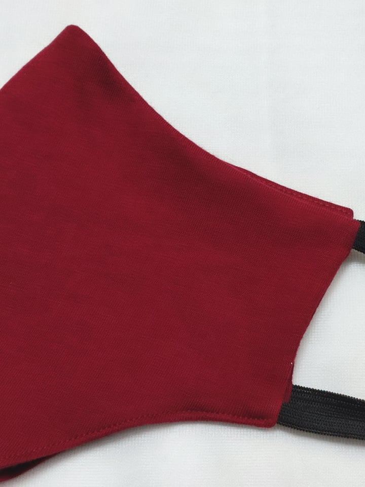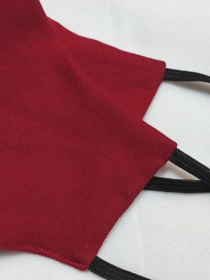 Bordowa maseczka ochronna z dzianiny bawełnianej, ładnie wyprofilowana do twarzy i mocowana na gumki dł.14cm. Posiada dwie warstwy materiału, na wierzchu i od spodu materiał jest ten sam. Ładnie przylega do twarzy zakrywając nos i usta. Uniwersalny czarny kolor dopasujesz do każdego ubioru, materiał lekko elastyczny. Gumeczki od dł.14cm.