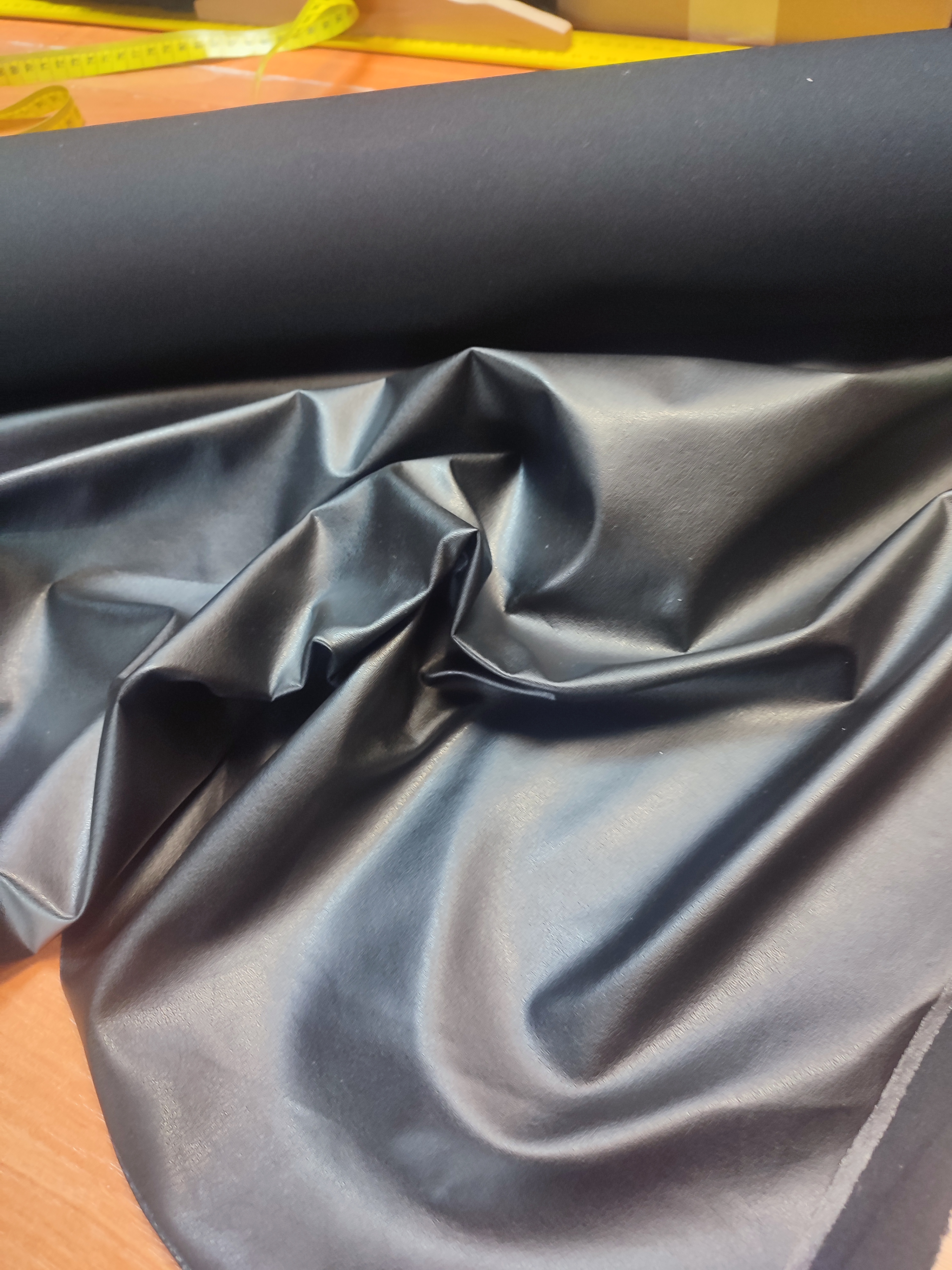 Materiał jest lekko elastyczny, miękki, gładki i wspaniale wygląda. Dodatkowo ma piękny połysk widoczny szczególnie w świetle. Zalety, jakimi może się pochwalić ekoskóra z połyskiem, to przede wszystkim łatwe czyszczenie i większa odporność na wodę, zabrudzenia czy zadrapania. Oprócz tego, że jest ona trwalsza, proces jej produkcji jest bardziej ekologiczny. Co więcej, materiał lekko się rozciąga co sprawia, że jest wygodny w użytkowaniu. Skład: 50% poliuretan, 50% poliester