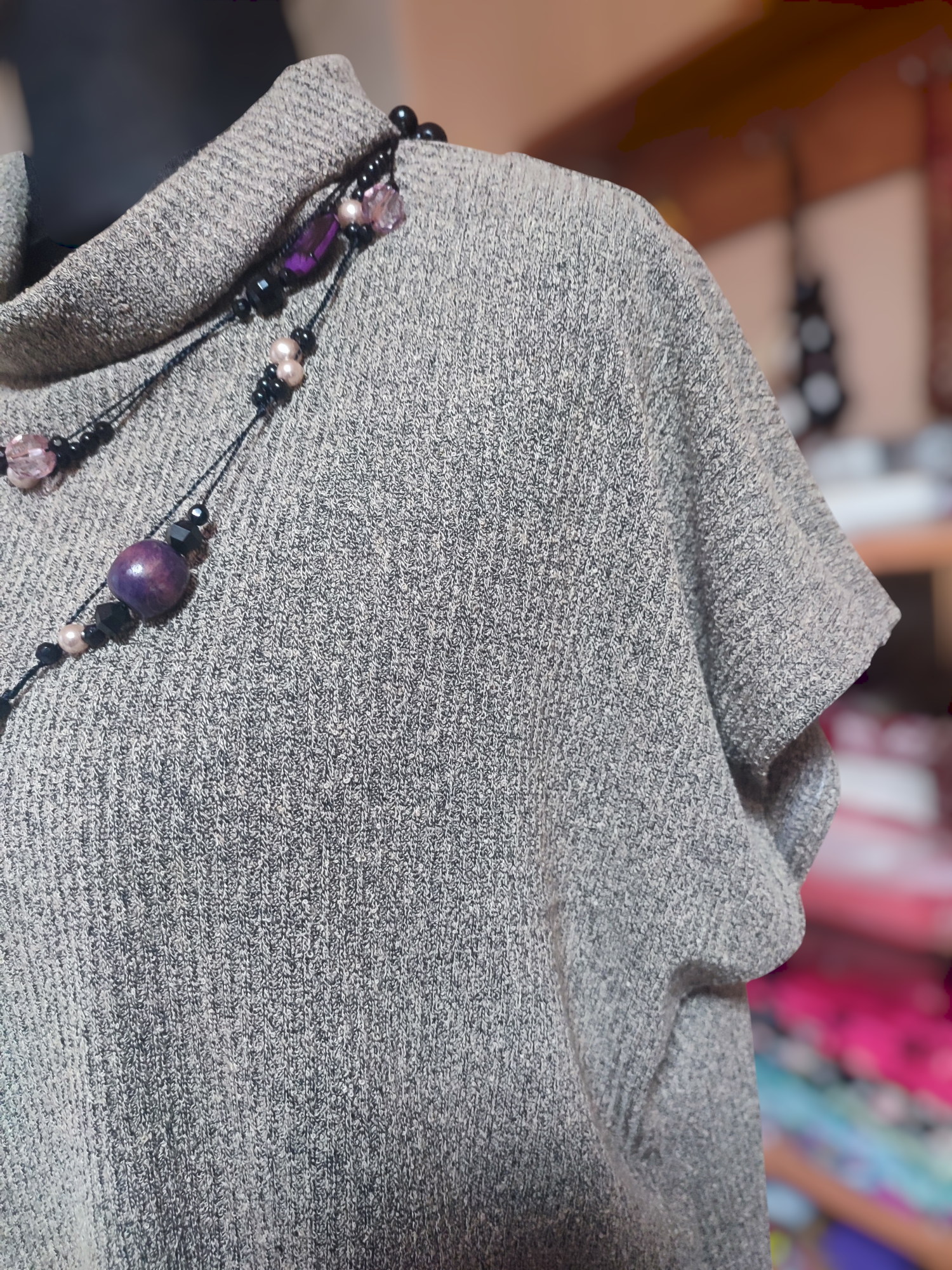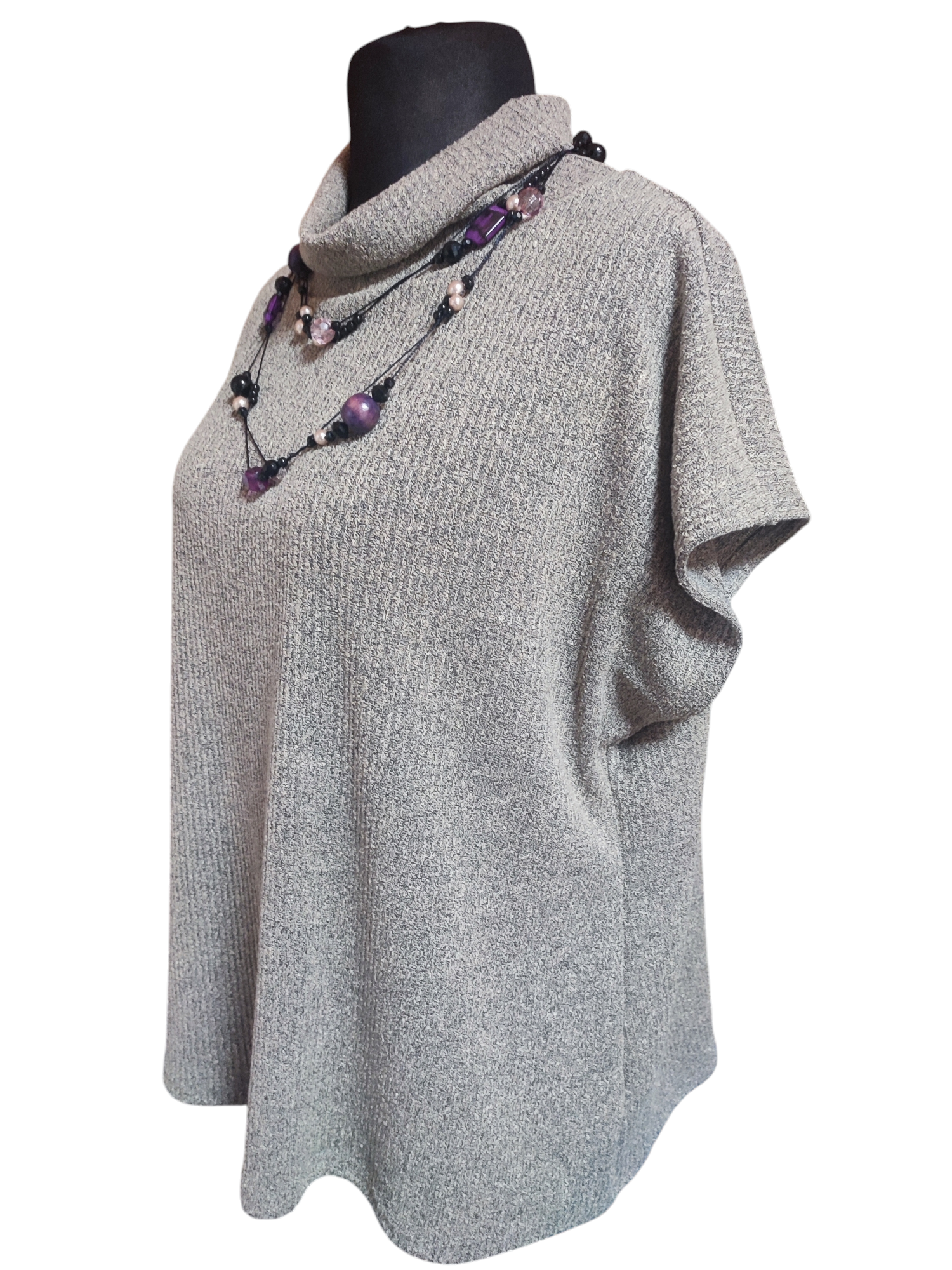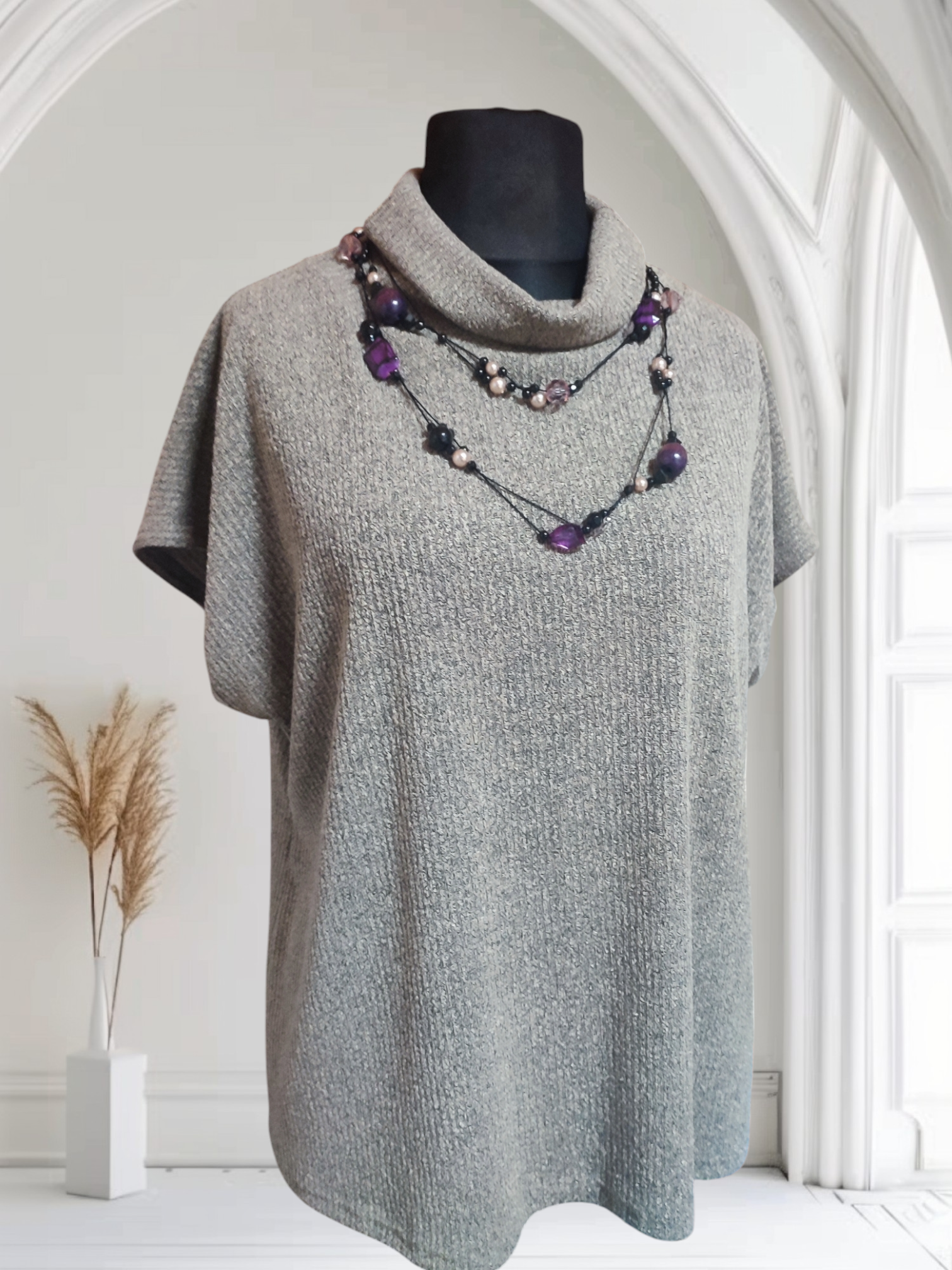 Prosty niebanalny fason jest odpowiedni dla każdej figury. Dekolt z modnym golfem zapewni Ci ciepło i wygodę. Wykonana z wyjątkowej dzianiny gęsto zdobionej prążkowanym splotem doda niesamowitego blasku cerze zmęczonej zimą, szarymi dniami i brakiem słońca. Materiał elastyczny, bardzo dobry w utrzymaniu, nie wymaga prasowania.