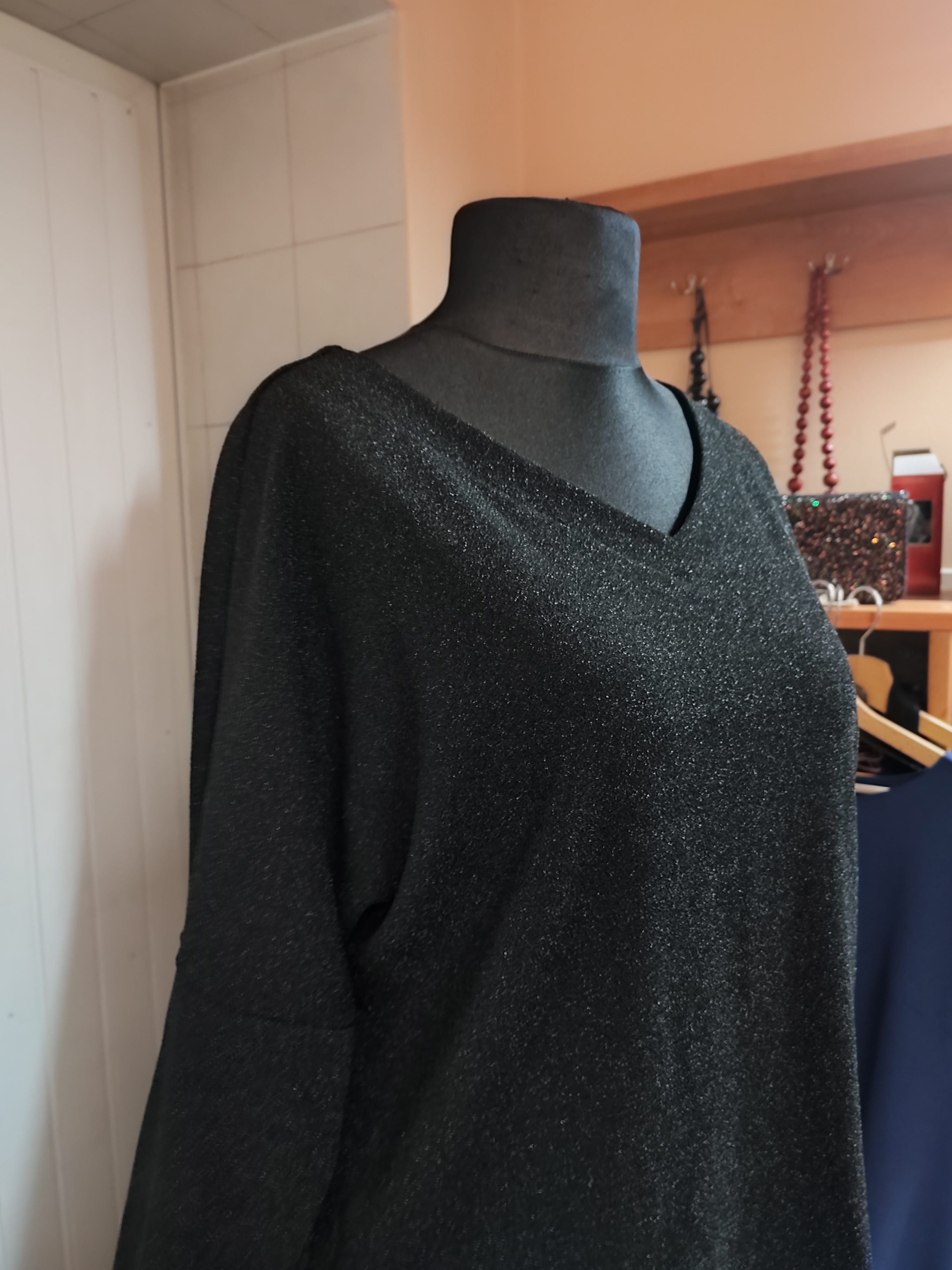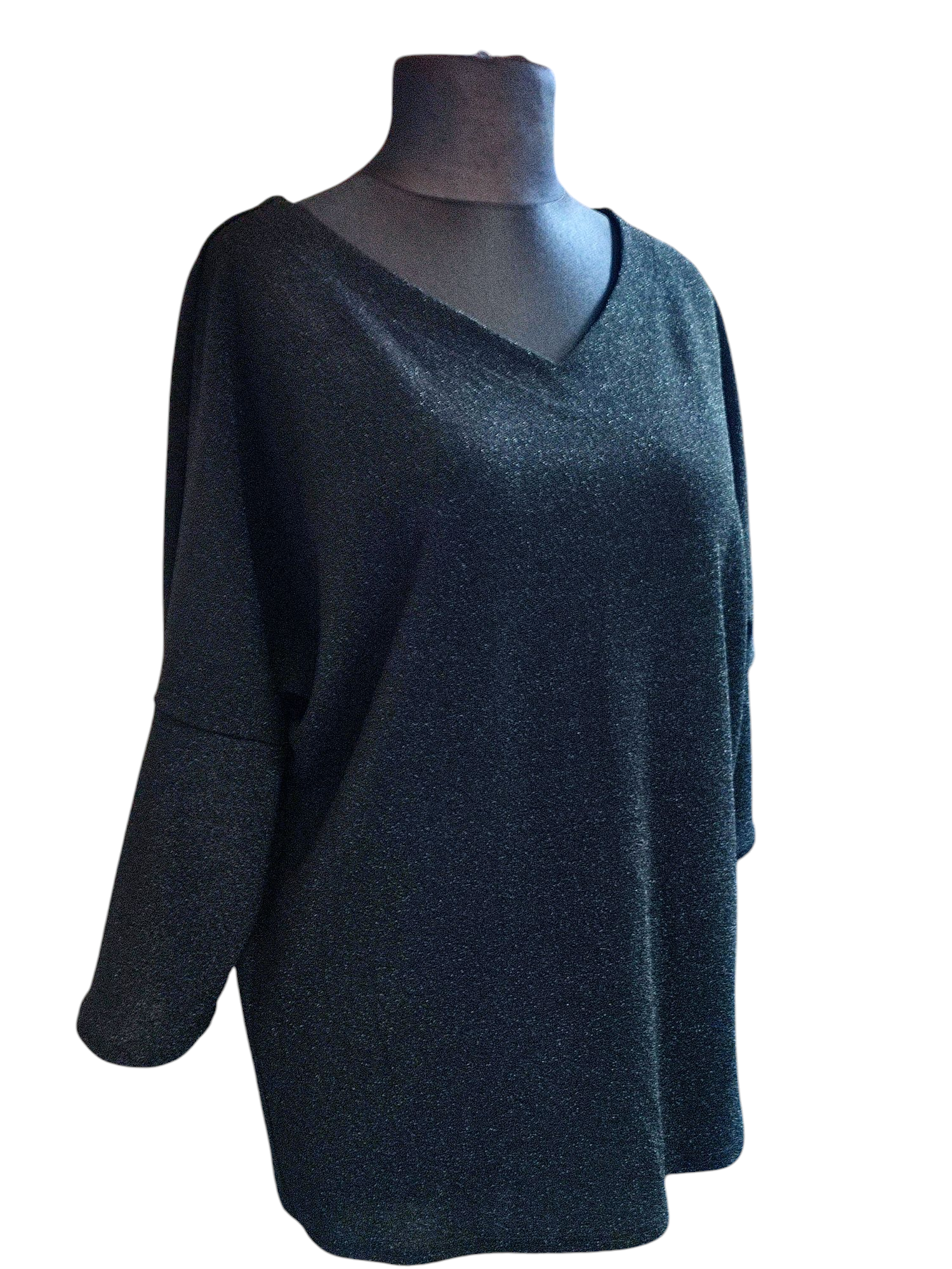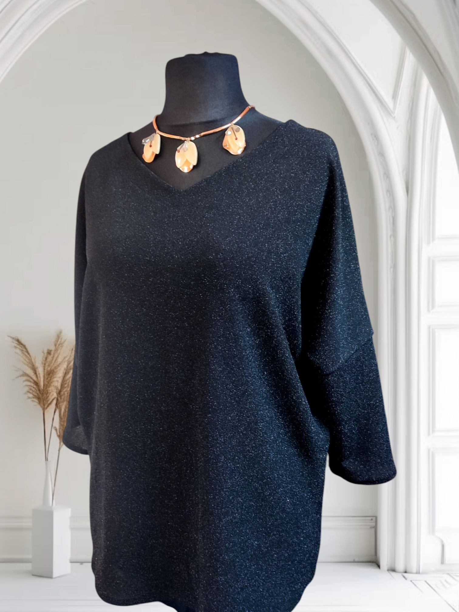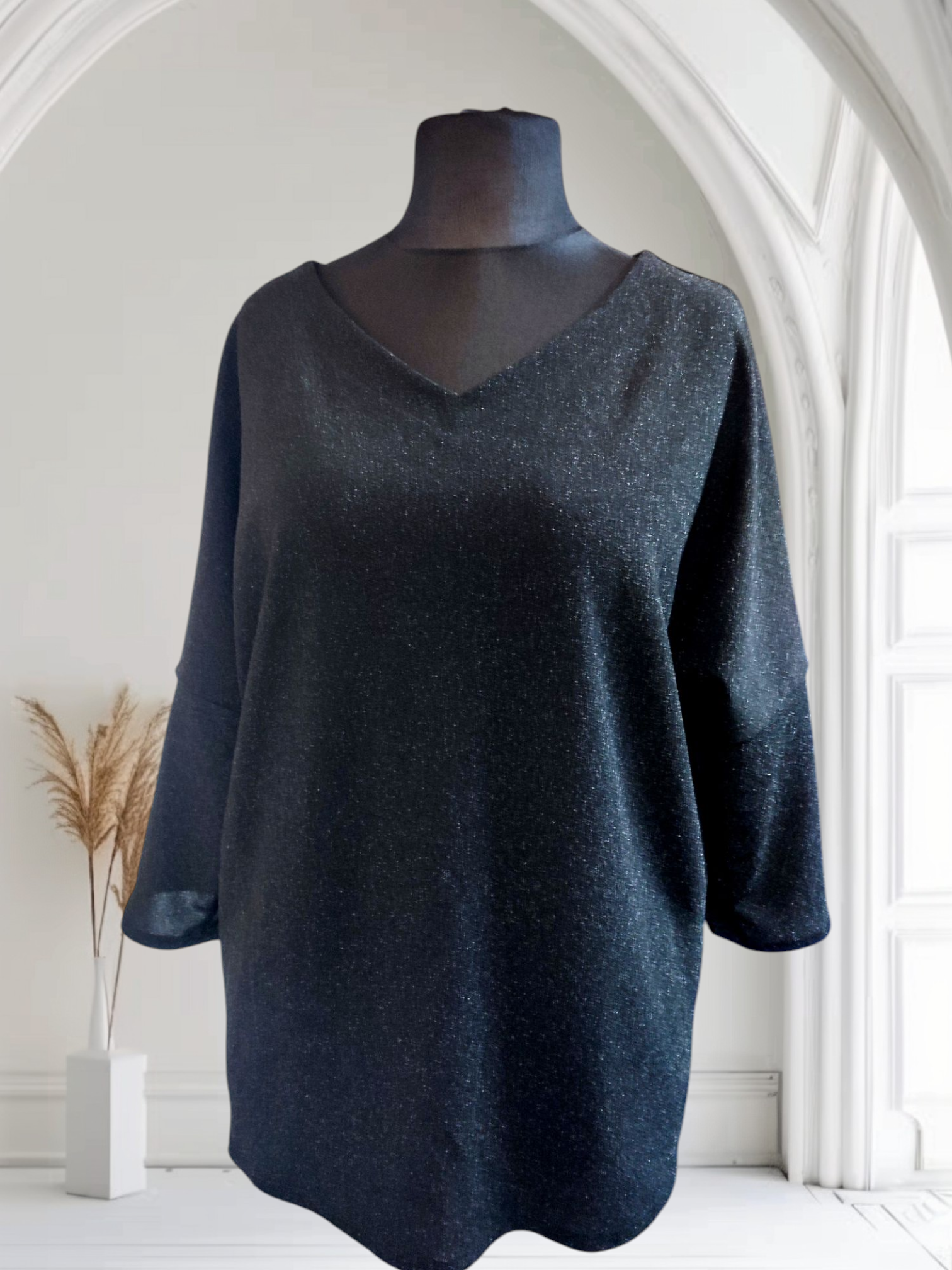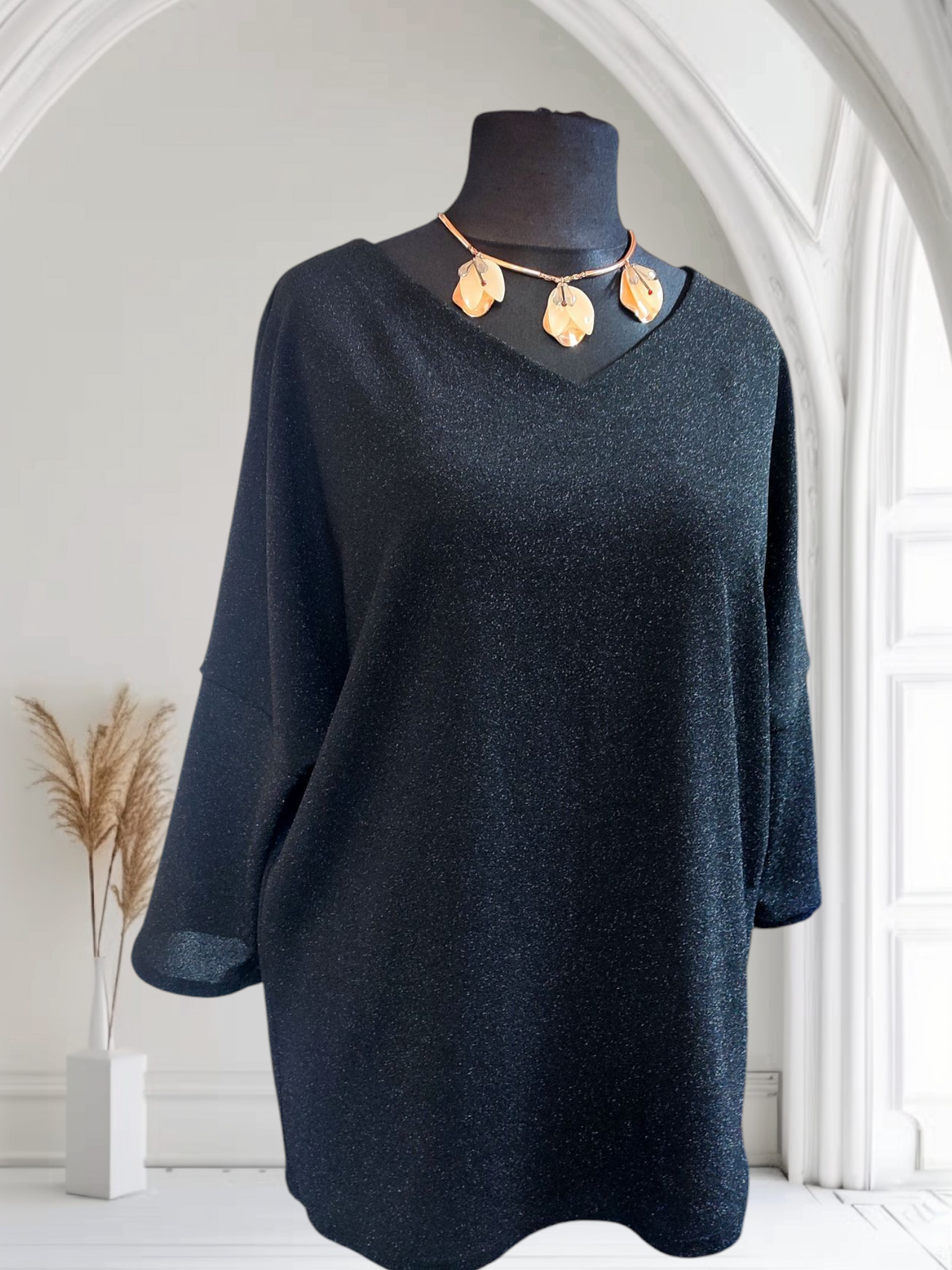 Strona główna » Tuniki do spodni » Wieczorowa tunika błyszcząca brokatem czarna - luźny fason